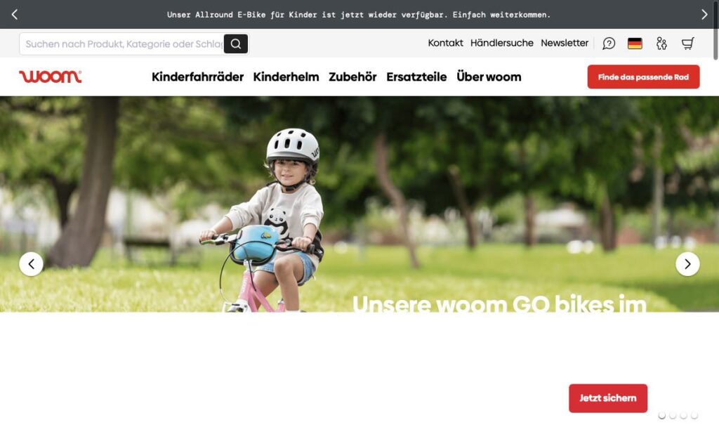 Das Unternehmen aus Klosterneuburg bei Wien wurde von den radbegeisterten Vätern Christian Bezdeka und Marcus Ihlenfeld gegründet und ist in über 30 Ländern präsent. Woom-Räder wiegen bis zu weniger als herkömmliche Modelle und setzen auf kindgerechte Geometrie, Bremsen und ein Größensystem.