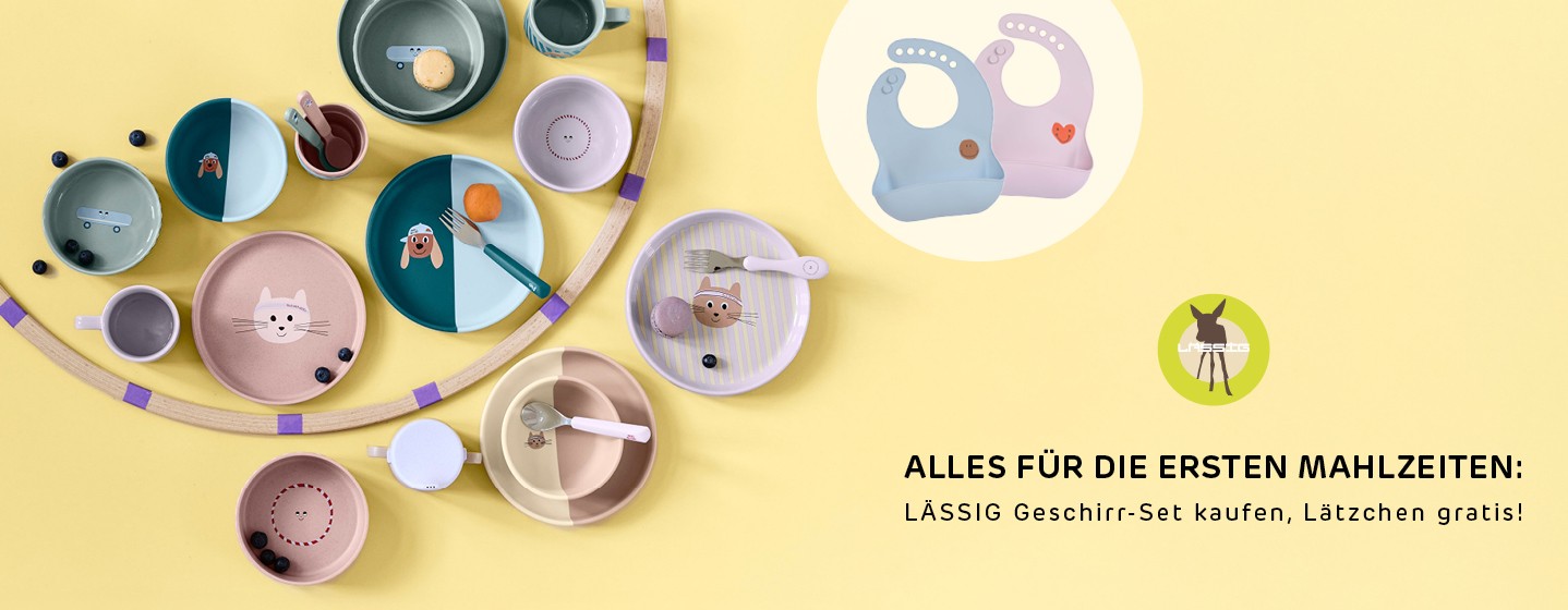 Sichert euch jetzt ein GRATIS-Lätzchen beim Kauf eines Geschirr-Sets bei im Fachgeschäft. Wir beraten euch gerne!